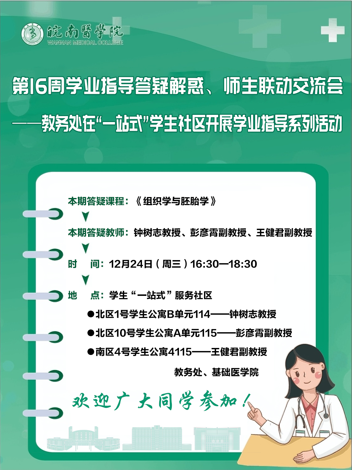 第16周学业指导 《组织学与胚胎学》答疑解惑、师生联动交流会