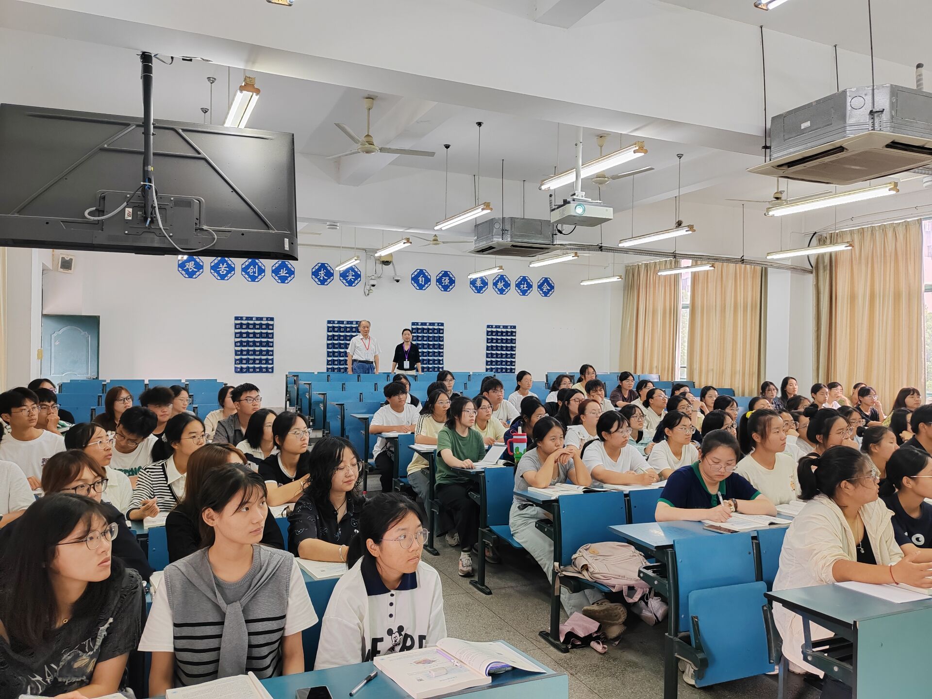 新生开课首日,共开设课程27门,授课教师近百人,覆盖全体2025级新生。各教学单位高度重视,新生教学保障到位,任课教师精神饱满、备课充分、与学生积极互动;新生听课聚精会神,课堂秩序井然,充分体现了我校新学期教风、学风建设的新气象、新面貌。